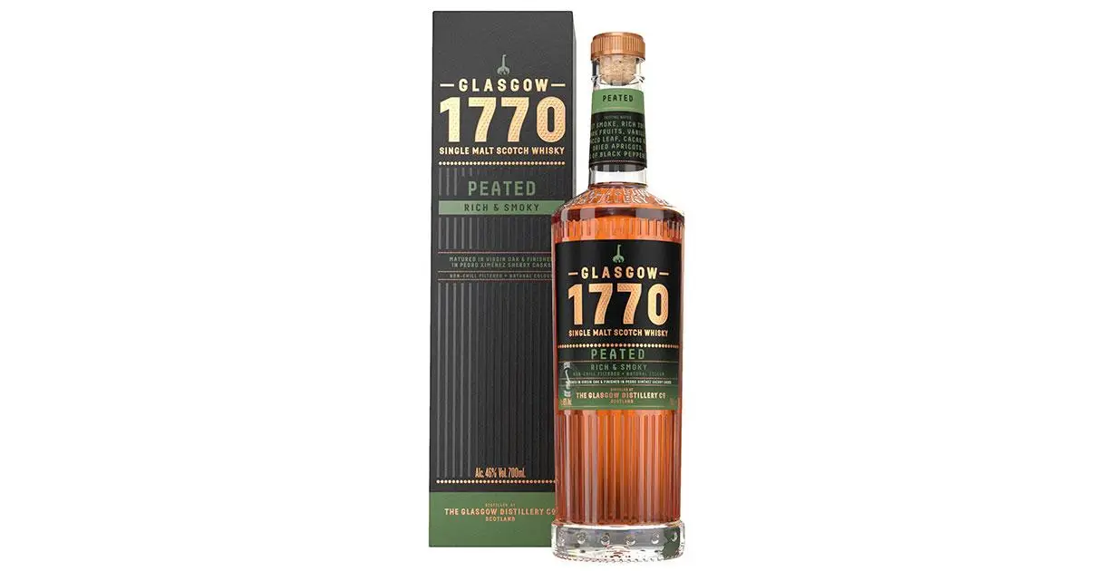Glasgow 1770 Peated offers a modern take on traditional peated whisky. Aged in a combination of virgin American oak and Pedro Ximénez sherry casks, it delivers a rich profile with flavors of smoky BBQ sauce, dark fruits, and a touch of salinity.